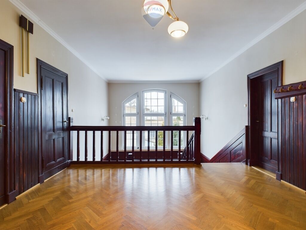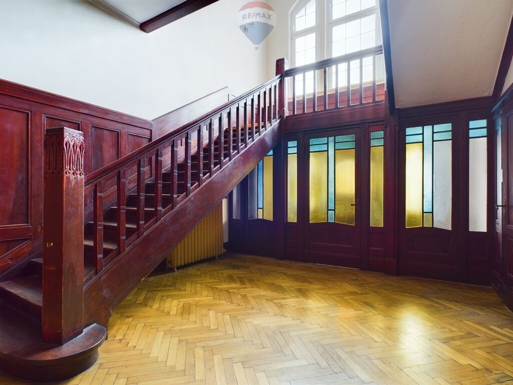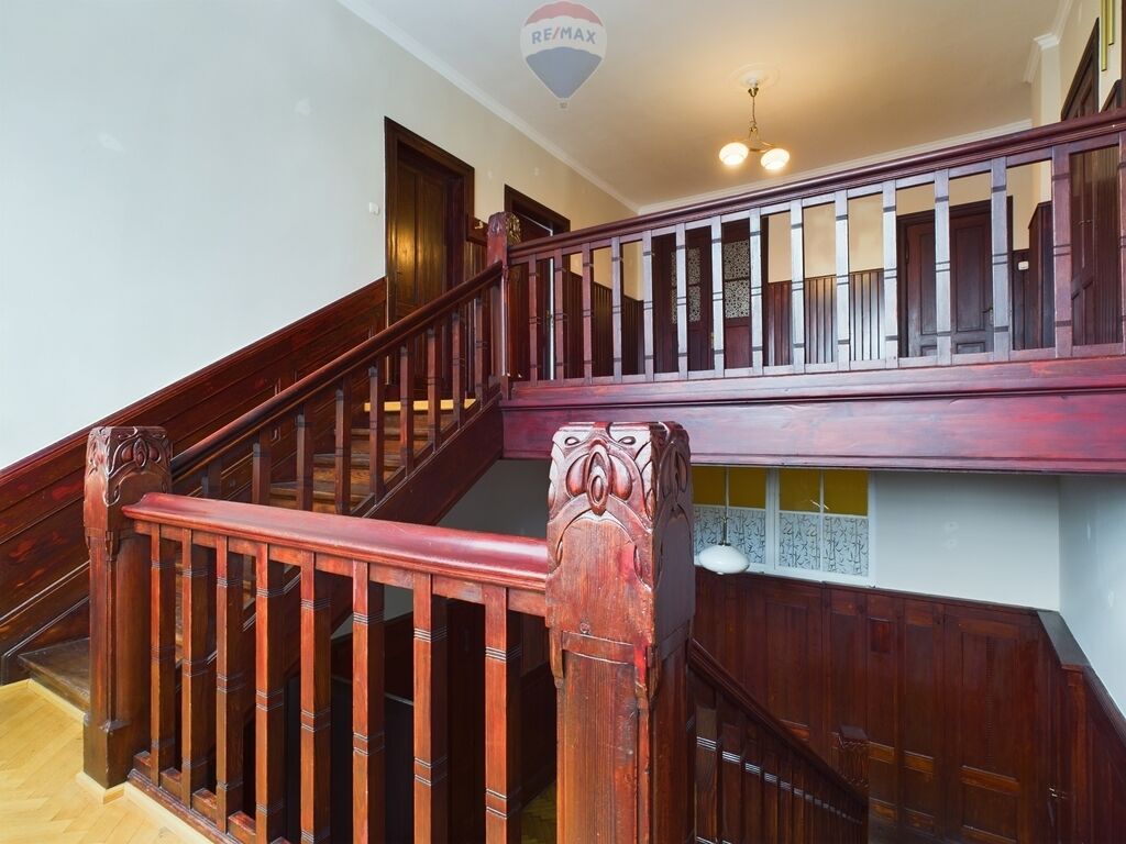 drewniana klatka schodowa i boazeria z 1905 roku, które nadają